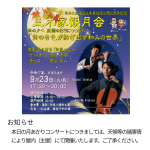 本日の月あかりコンサートは、屋内(主屋)にて開催いたします。ご了承ください。