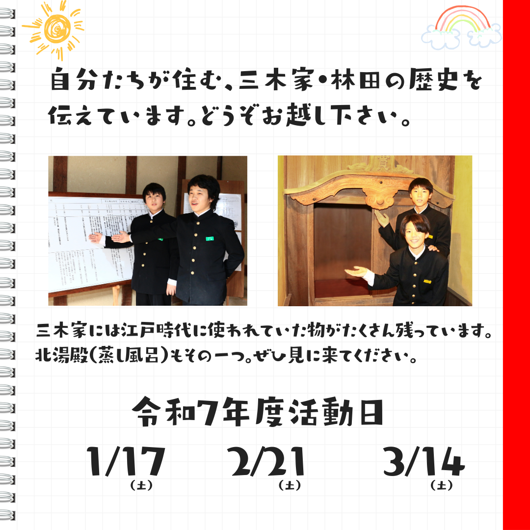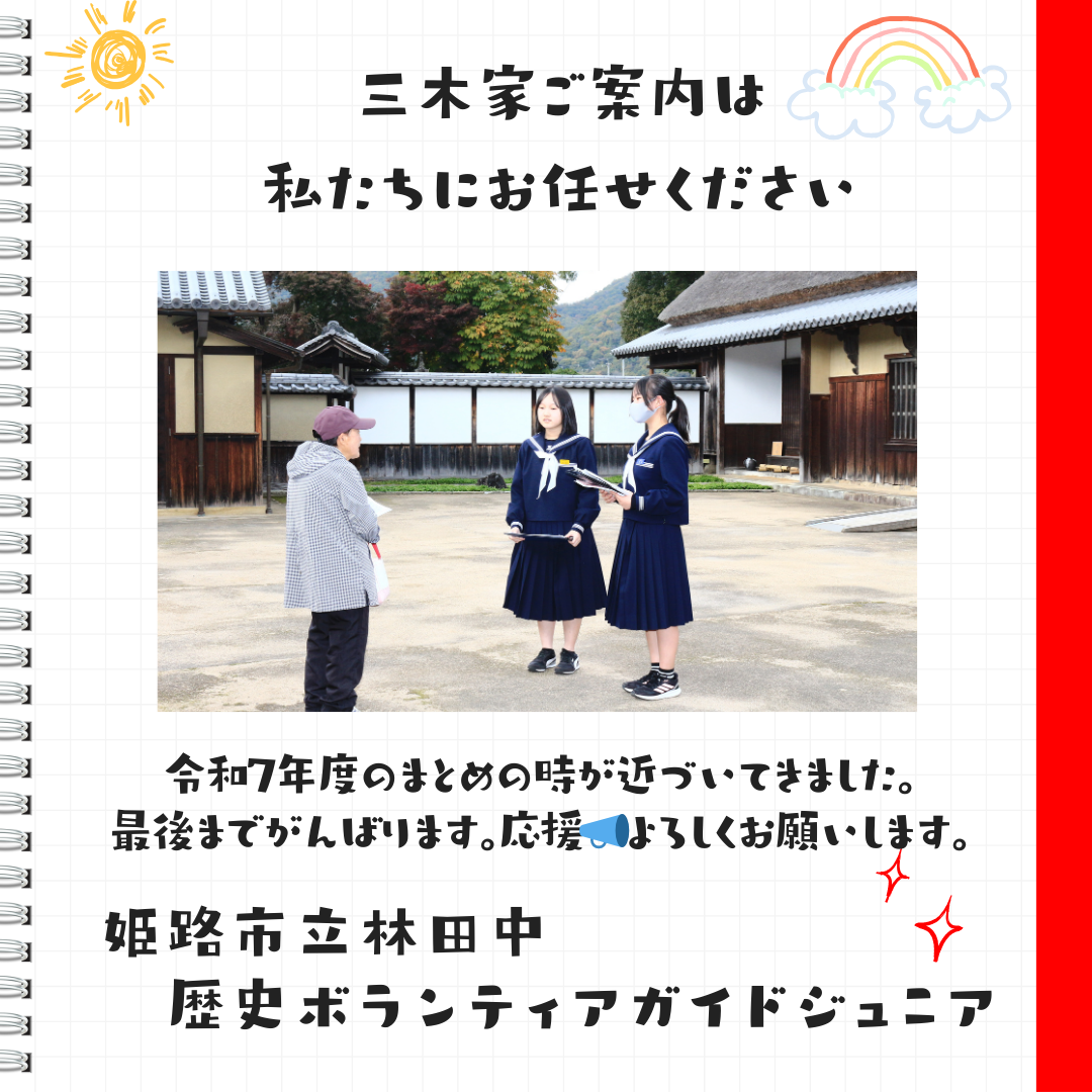 林田中ジュニアガイド 1月の活動日 今年度の活動もあと3回を残すのみとなりました。三年生は高校受験が目の前です。 今度は二年生・一年生が中心となりジュニアガイドの活動を引っ張って行くことになります。 みんな最後まで頑張れ。応援よろしくお願いします。 ツイート